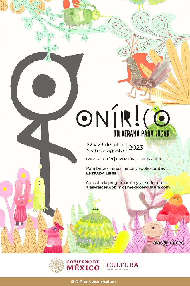 También, Alas y Raíces llevará a cabo “ONÍRICO. Un verano para jugar”, donde habrá improvisación, diversión y exploración que crearán una experiencia artística integral para bebés, niñas y niños. Contará con cuatro sedes y cuatro experiencias distintas que podrán disfrutar el sábado 22 y domingo 23 de julio y el sábado 5 y domingo 6 de agosto de 2023, a partir de las 12:00 horas.