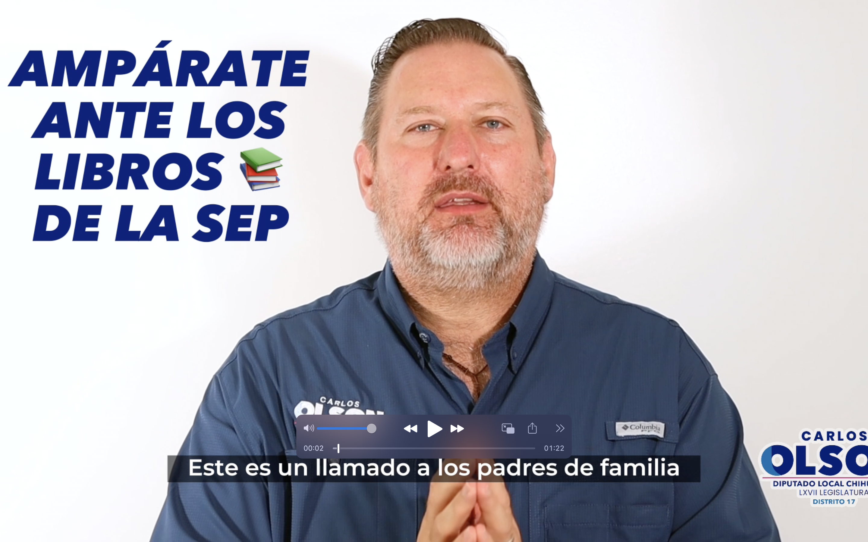 Chihuahua, Chih.- El diputado del Partido Acción Nacional (PAN), Carlos Olson, ha tomado una posición firme en defensa de los valores y la educación de los niños chihuahuenses, al invitar a los padres de familia a presentar amparos en contra de los libros de texto gratuitos distribuidos por la Secretaría de Educación Pública (SEP). Con el objetivo de facilitar este proceso, el legislador pone a disposición de los interesados el formato de amparo a través de sus redes sociales.
