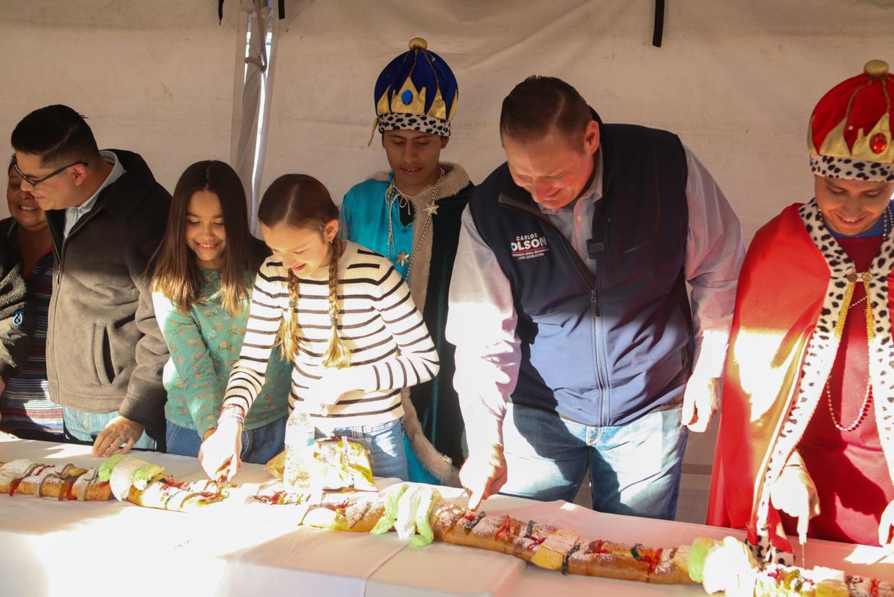 Chihuahua, Chih. – El diputado Carlos Olson, del Partido Acción Nacional, llevó a cabo por segundo año consecutivo un alegre festejo con motivo del Día de Reyes. En las instalaciones de la Escuela de Trabajo Social del Estado, en la colonia Lealtad, se compartió una gigantesca rosca de 20 metros con alrededor de mil 700 vecinos de su Distrito.