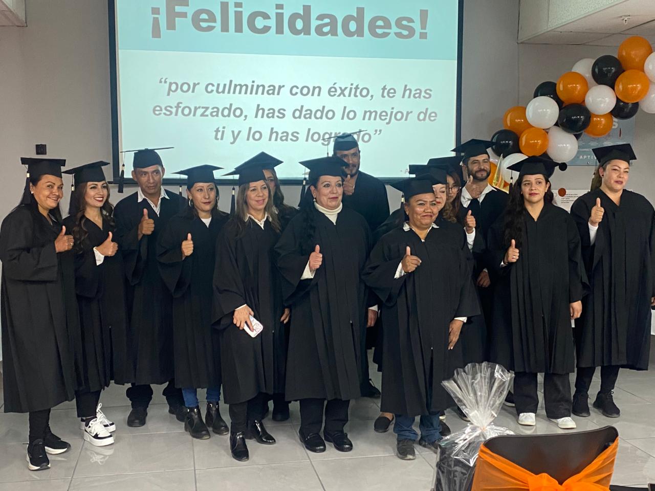 En una ceremonia de graduación encabezada por Ricardo Medina, coordinador de la Zona 15 del ICHEA, y Óscar Hernández, gerente de la empresa APTIV, se reconoció a las y los trabajadores que pusieron todo su empeño en mejorar en cuanto a su formación académica.