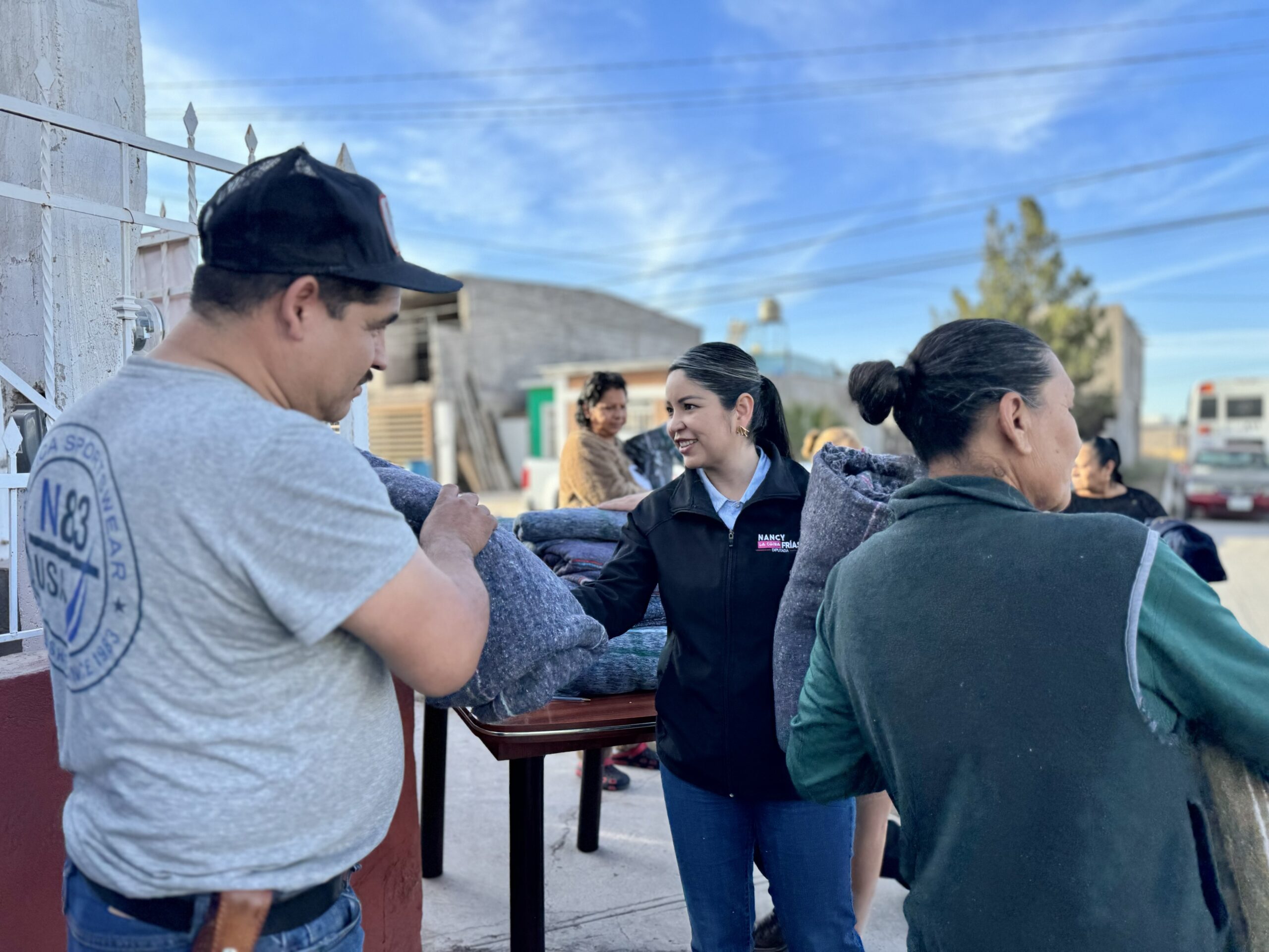Chihuahua, Chih.- En un esfuerzo por apoyar a las familias más vulnerables del Distrito 12 ante las bajas temperaturas, la diputada local por el Partido Acción Nacional (PAN), Nancy Frías, encabezó una jornada de entrega de apoyos en diversas colonias del norte de la ciudad.