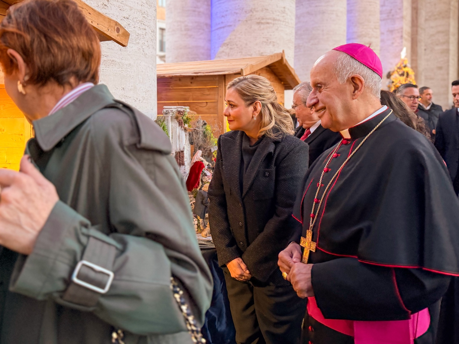 La gobernadora Maru Campos inauguró con un nacimiento rarámuri, la exposición internacional de los cien pesebres que se realiza anualmente en la plaza de San Pedro en la Santa Sede.