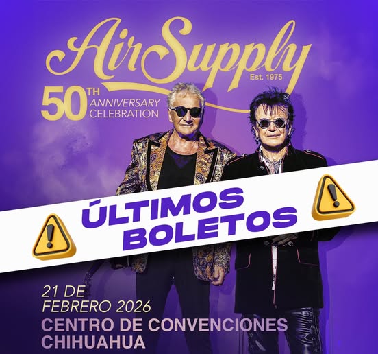 La legendaria agrupación australiana Air Supply se presentará este sábado 21 de febrero en el Centro de Convenciones Chihuahua, prometiendo una velada llena de nostalgia, romance y los clásicos que han marcado generaciones.