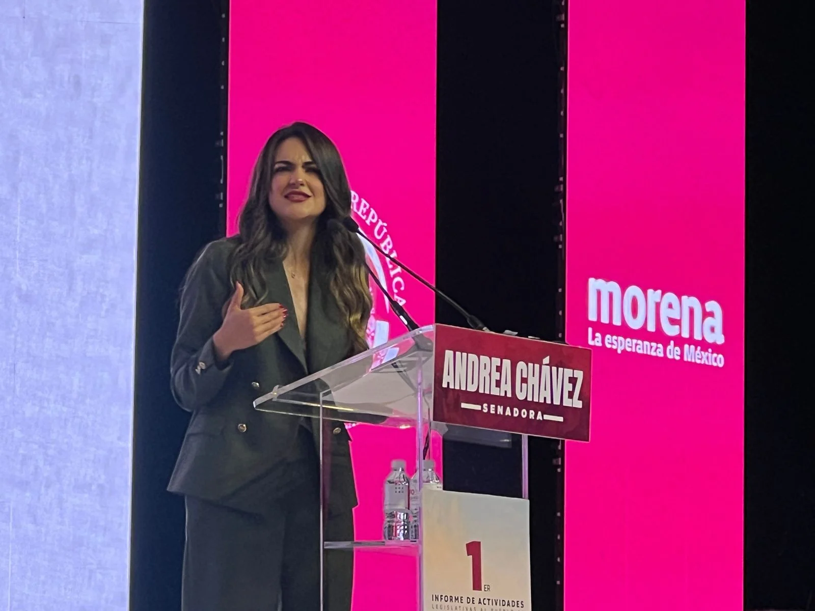 Chihuahua, Chih., 7 de septiembre de 2025. — La senadora por Morena, Andrea Chávez Treviño, presentó este domingo su primer informe legislativo en un acto público realizado en el Centro de Exposiciones y Convenciones de Chihuahua, donde se congregaron simpatizantes, líderes políticos y ciudadanos.