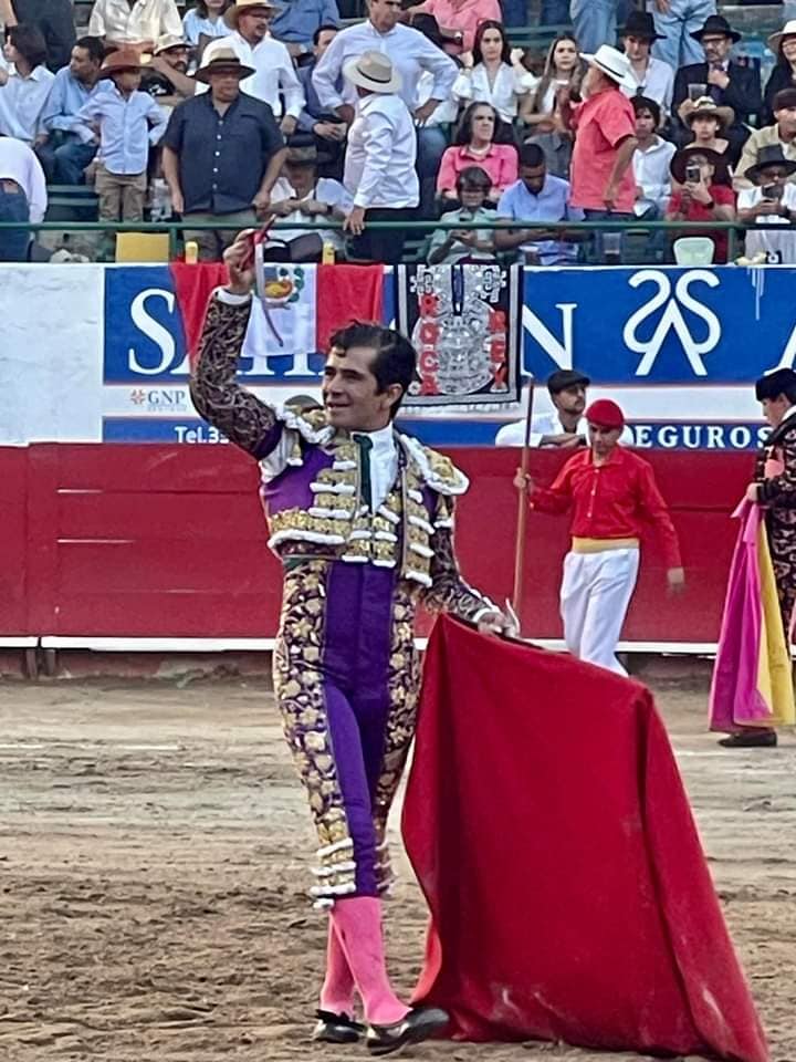 Andrés Roca Rey (Lila y azabache) la Máxima figura del toreo mundial regresaba a la plaza con el toro “Consagrado” con quien inició la lidia de una manera aún tanto arrebatada por el lado izquierdo. Poco a poco lo fue metiendo a su muleta principalmente por el pitón izquierdo que donde el toro respondía mejor. A fuerza de poder en su muleta logró someterlo. Haciendo una faena de mucho mérito cuajando al toro de manera magistral.
