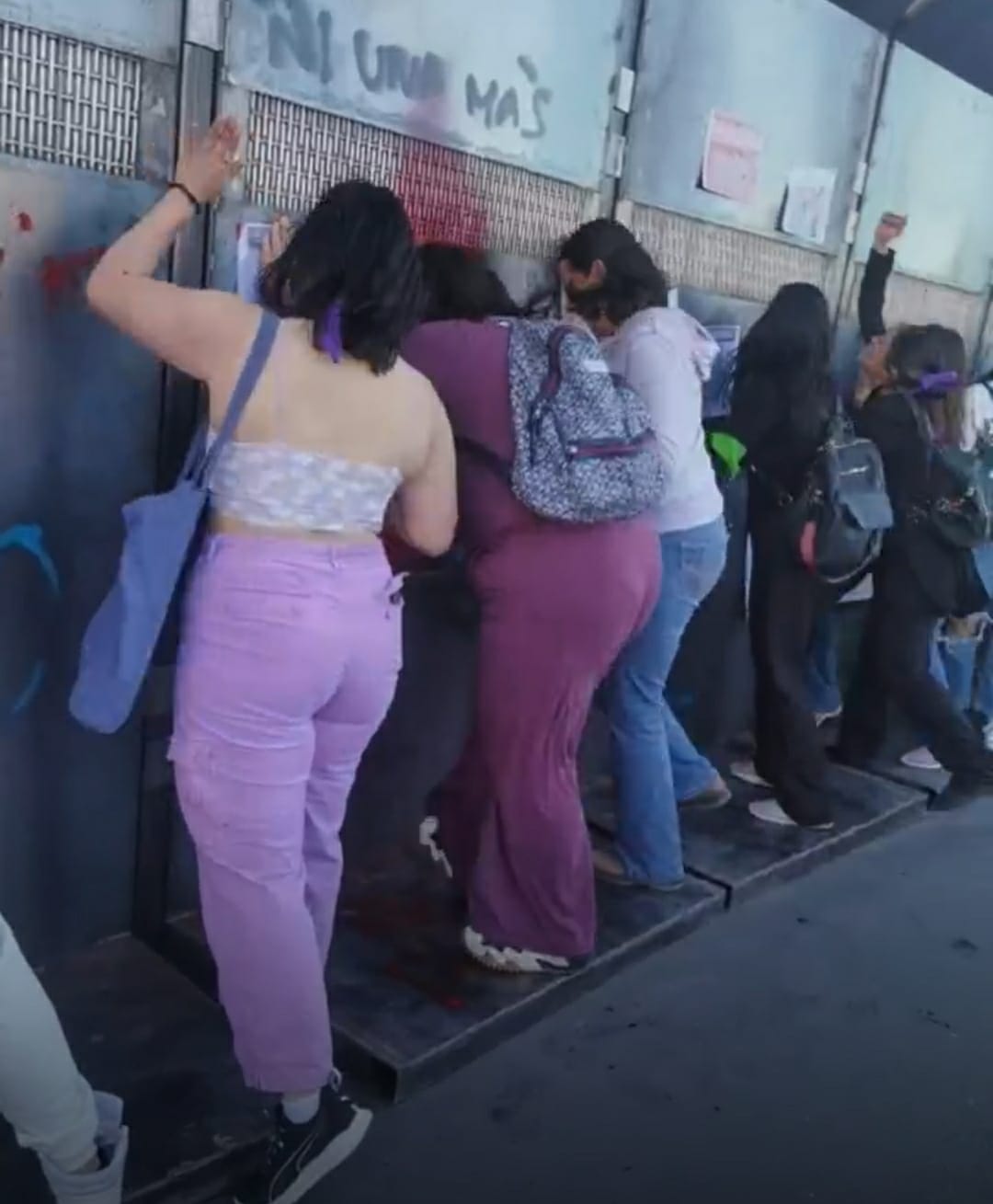 Todos estos objetos fueron utilizados para tratar de abrir una brecha en la barrera metálic y aunque le prendieron hasta fuego, siempre fueron repelidas con extinguidores.