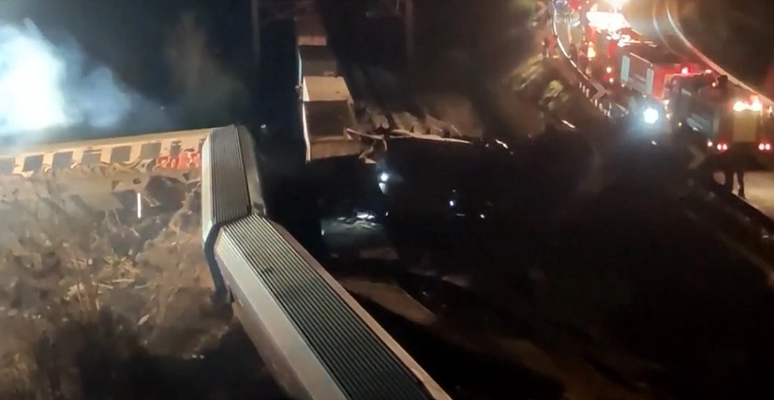 Imágenes de la cadena pública estatal de Grecia Ert mostraron el humo que salía de vagones de tren descarrilados en la madrugada del miércoles. Largas líneas de vehículos de rescate con luces intermitentes también se observanan al lado de los vagones de tren desarticulados.