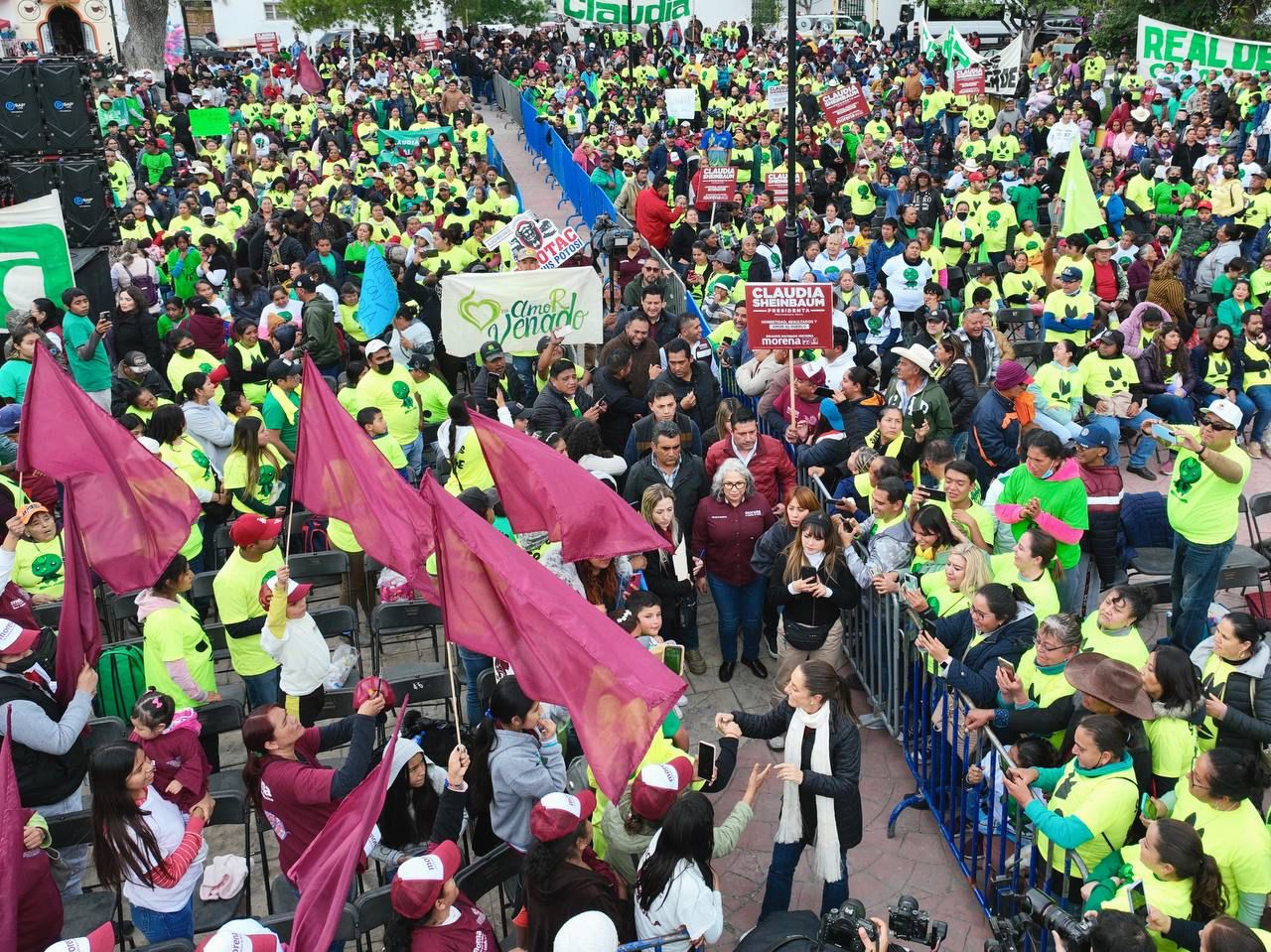 ’’En San Luis Potosí te abrimos los brazos, gracias por estar con nosotros, te queremos mucho, te vamos a cuidar (…) En San Luis Potosí, Claudia Sheinbaum es verde’’, concluyó.