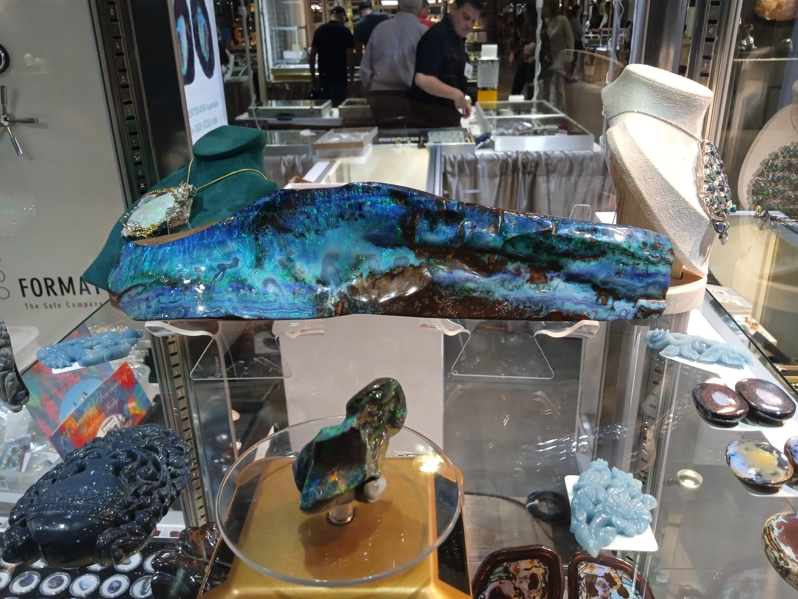 En esta 71 edición, muy orientada al rescate de valores patrióticos (para honrar a Estados Unidos), llevó el nombre de “Rojo, Blanco y Azul” celebrando el Espíritu de los Minerales y ya se esperaba que se expusieran materiales raros y gemas descomunales como en algunas otras ediciones previas, que al especialista y al profano lo mantienen en un estado de sorpresa permanente.