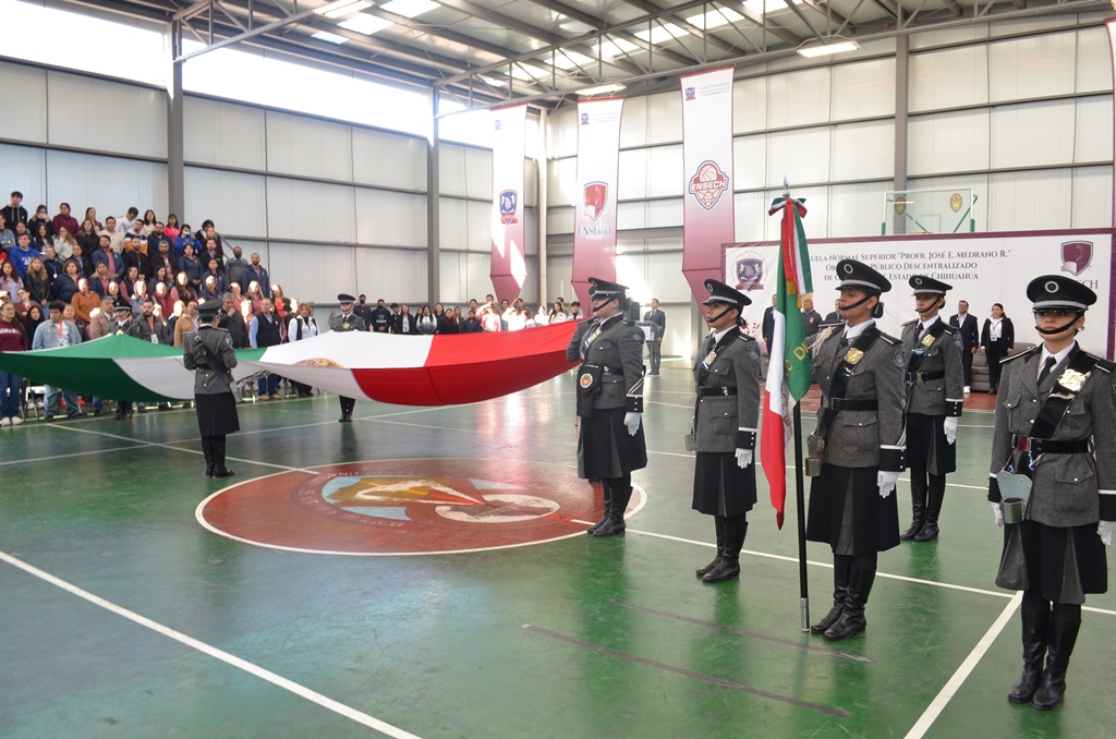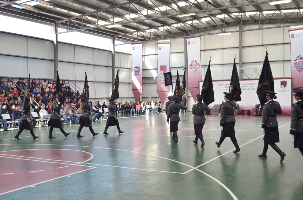 El Lic. Julio César López, Director de la Escuela Normal Superior del Estado de Chihuahua (ENSECH) “Profr. José E. Medrano R.” , recibió en sus instalaciones como anfitrion a la escolta y banda de guerra del Instituto Tecnológico de Tepic, quienes llevaron a cabo en primer plano los Honores a la Bandera, entonando el Himno Nacional, seguido dieron muestra de gallardia civica con marchas y toques , los tambores hiceron retumbar al gimansio de ENSECH, trompetas y clarines hicieron vibrar los corazones de maestros, alumnos, invitados, publico en genral, que se dieron cita para presenciar el emotivo evento.