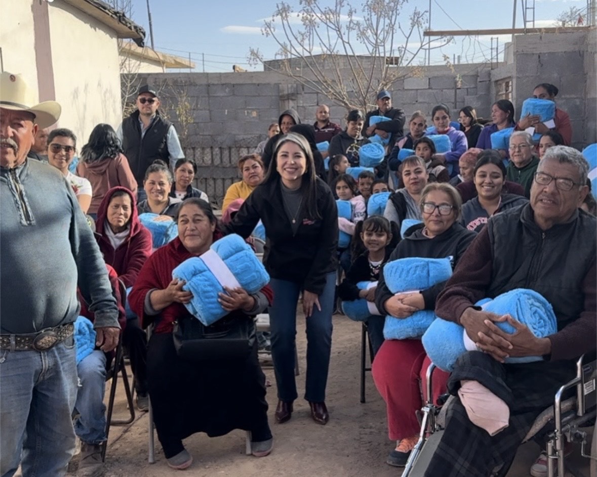 Chihuahua, Chih.- Con el objetivo de mitigar los efectos de las bajas temperaturas y respaldar a las familias más vulnerables, la diputada del Partido Acción Nacional (PAN), Nancy “La China” Frías, entregó cobijas a vecinas y vecinos de la colonia Granjas del Valle.