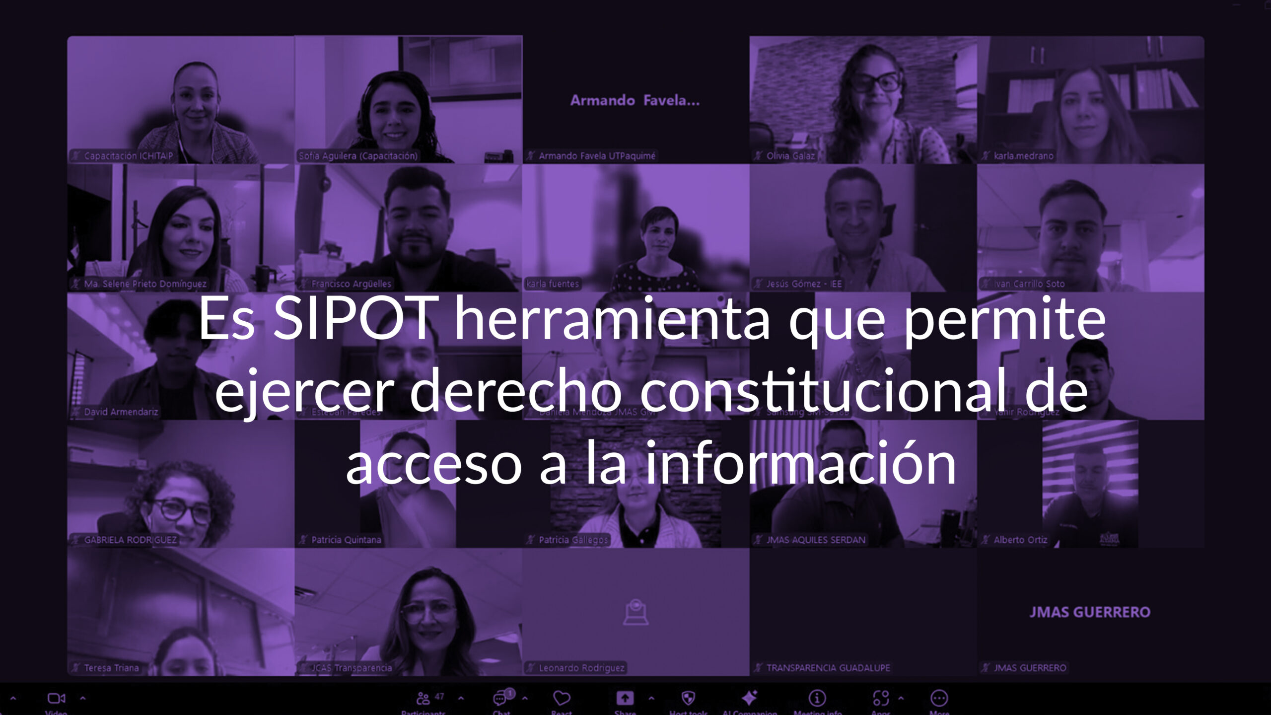 A través de la modalidad virtual, el Instituto Chihuahuense para la Transparencia y Acceso a la Información Pública (ICHITAIP) realizó una charla de capacitación sobre el Sistema de Portales de Transparencia (SIPOT) en el que participaron 48 servidores públicos de 36 diversos sujetos obligados de la entidad.