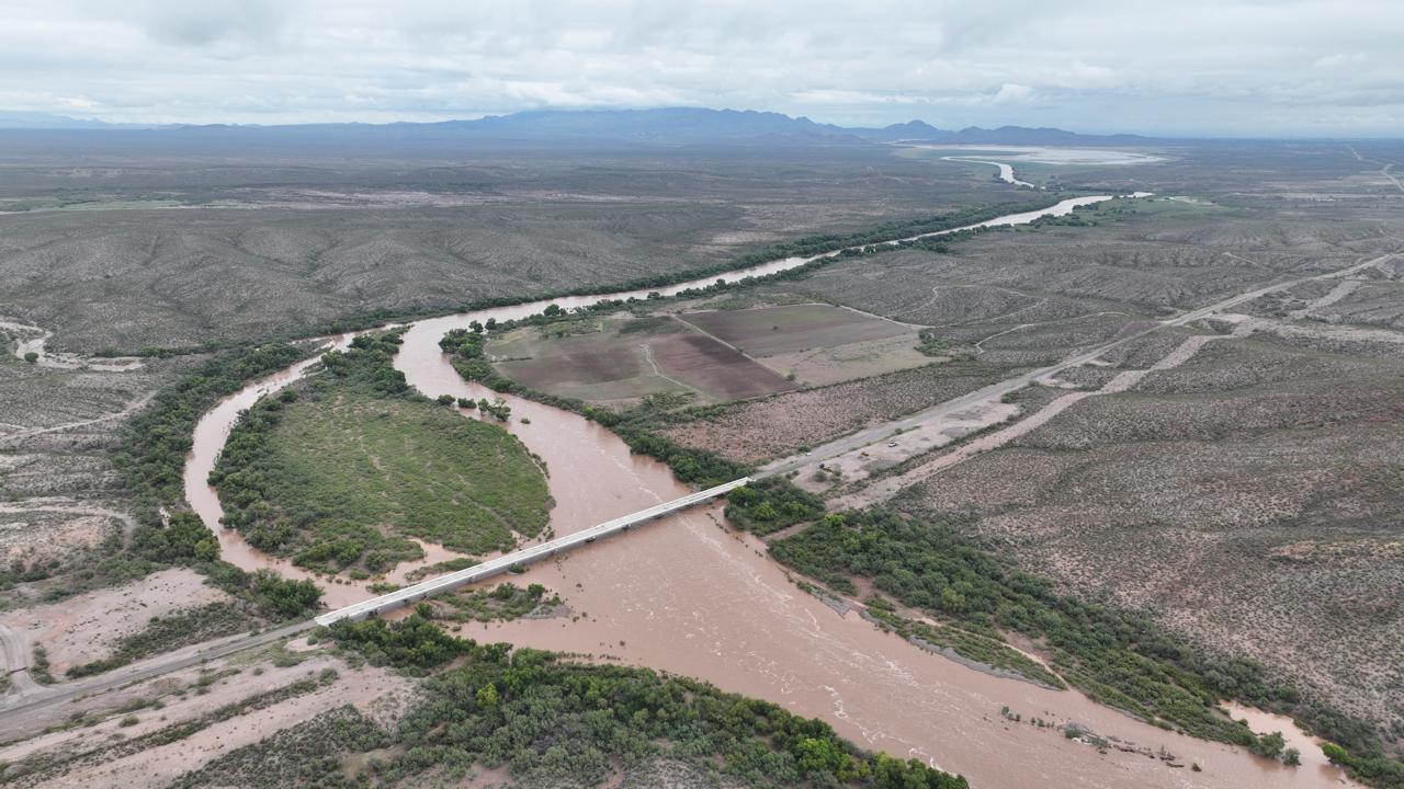 Otra comitiva inspeccionó el Río San Pedro, a la altura del puente Zertuche que está ubicado en la carretera Delicias a Satevó, a fin de vigilar el cauce y que el agua fluya en condiciones adecuadas.