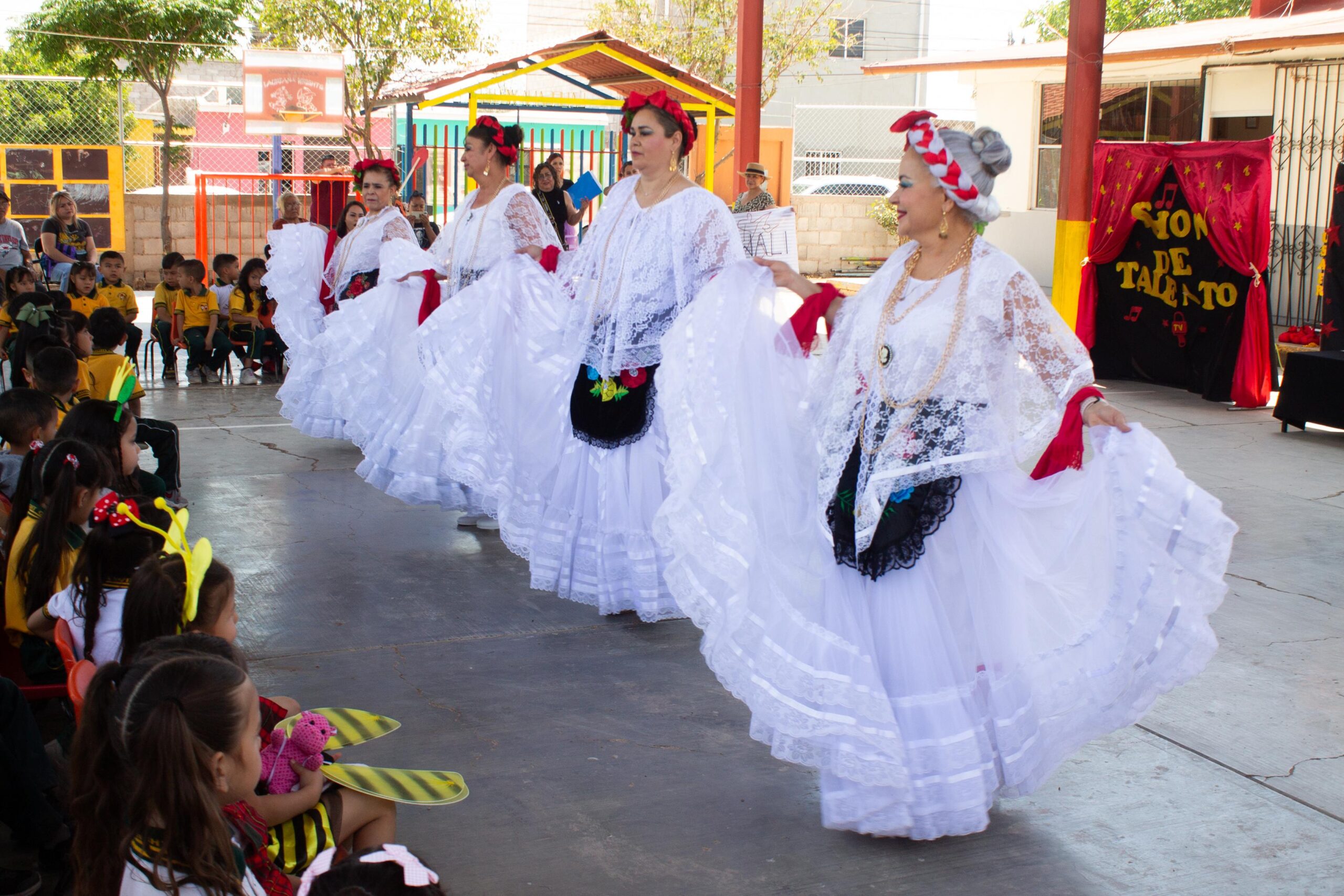 También se contó con la presencia del grupo de danza Sewali, integrado por adultas mayores, el cual participó con cuadros dancísticos de Veracruz, esta interacción motiva a las y los menores al ver el compromiso de sus familias con la escuela.