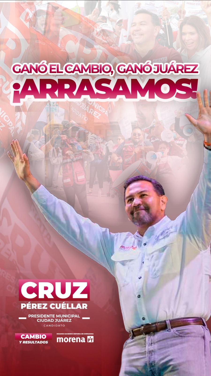 Ciudad Juárez, Chih. – Luego de una intensa jornada electoral, el candidato a la alcaldía por la coalición “Sigamos Haciendo Historia en Chihuahua”, Cruz Pérez Cuéllar, expresó su gratitud hacia los habitantes de Ciudad Juárez por su apoyo inquebrantable a pesar de la “guerra sucia” en su contra por parte del PRIAN.