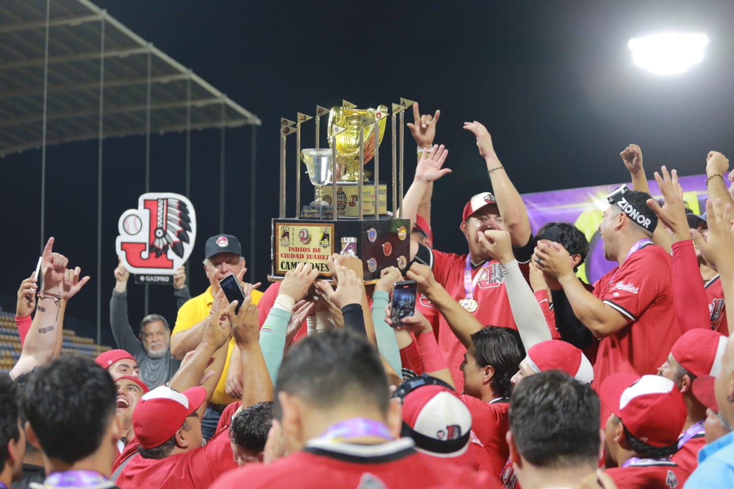Chihuahua, Chih. — La sequía terminó. Luego de 25 años de espera, los Indios de Ciudad Juárez se proclamaron campeones de la Liga Estatal de Béisbol de Chihuahua, al imponerse 4 carreras a 3 a los Dorados de Chihuahua en un emocionante Juego 7 disputado la noche del sábado 6 de septiembre en el Estadio Monumental de la capital.