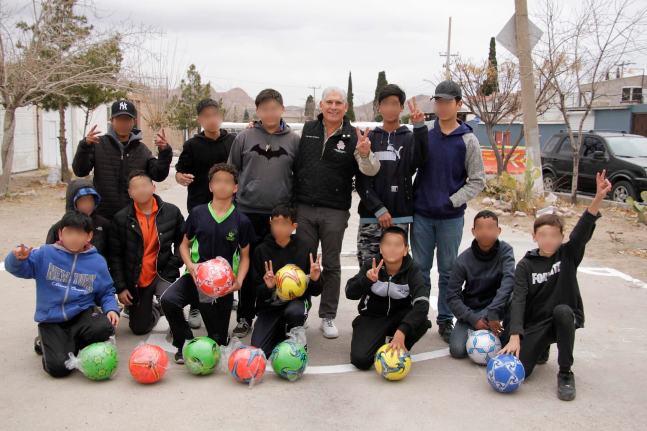 Chihuahua, Chih.- El diputado Mario Rodríguez del Partido Acción Nacional (PAN), contribuye al bienestar de la comunidad con la construcción e inauguración de una cancha de fútbol. Después de una visita el pasado 21 de diciembre a las y los vecinos de colonia Villa Nueva para celebrar una posada navideña, en la que le expresaron la necesidad de construir una cancha de fútbol para beneficio de las y los niños, ante esto el diputado se comprometió a hacer la cancha en el parque de la colonia y a un mes de dicho compromiso, volvió a Villa Nueva para inaugurar la cancha y donar balones de fútbol.
