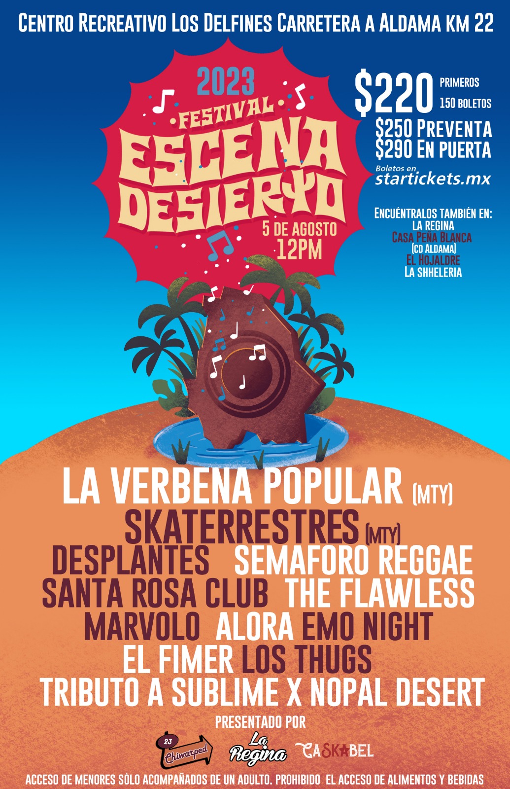 La primera edición del Festival Escena Desierto se realizará el 5 de Agosto y estarán deleitando 12 bandas locales y nacionales como La Verbena Popular y Skaterrestres.