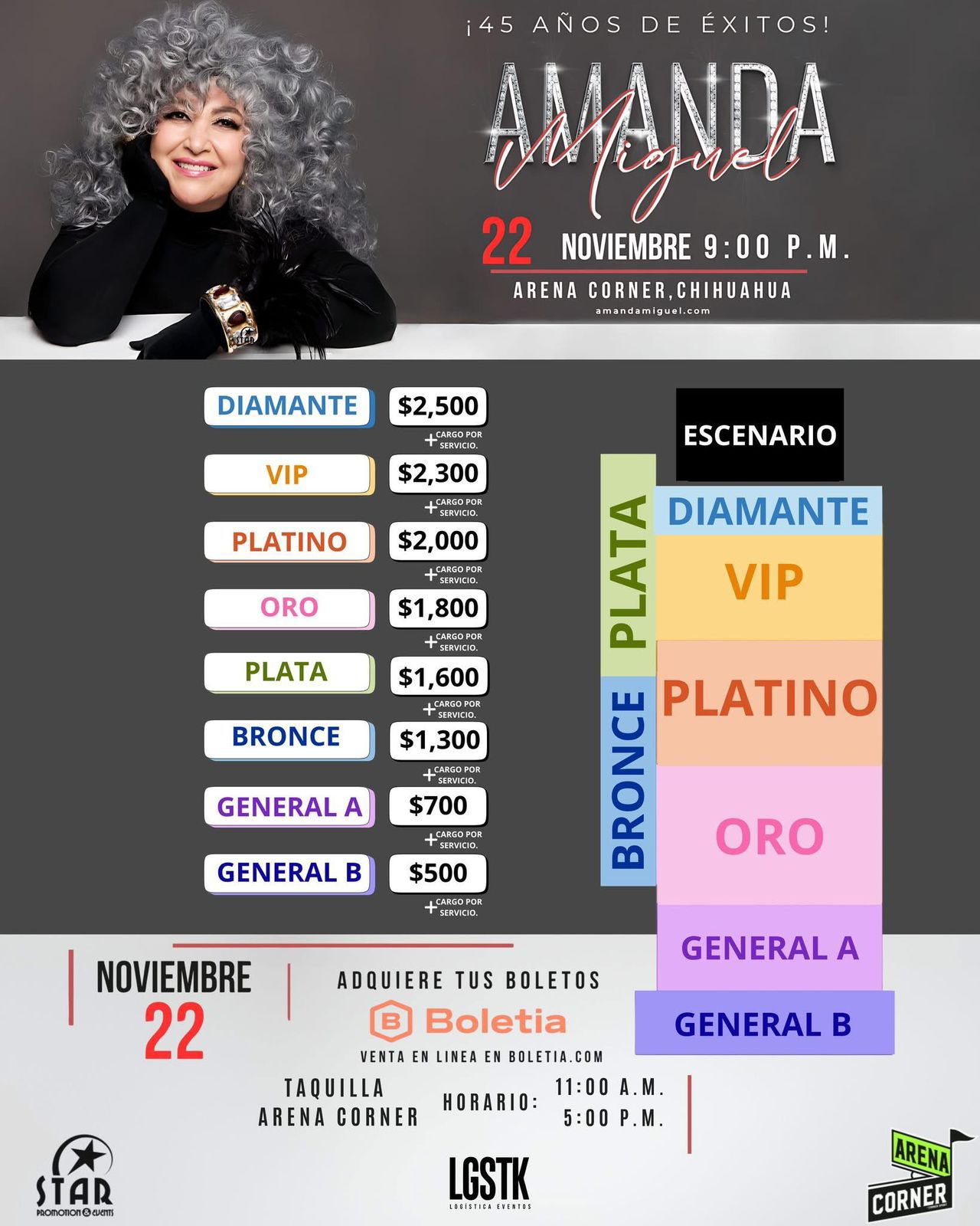 La cita será el próximo sábado 22 de noviembre a las 9:00 P.M. en el Arena Corner de Chihuahua, un escenario perfecto para revivir los grandes éxitos de esta leyenda viviente de la música, como “El Me Haces Bien”, “Mi Buen Corazón”, entre otros.