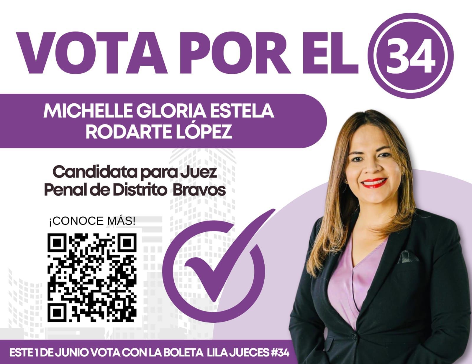 Presentamos a Michelle Gloria Estela Rodarte López, Candidata para Juez Penal de Distrito Bravos