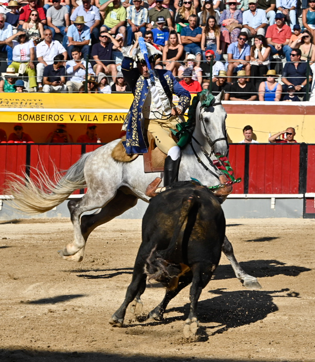 Cuajó una gran tarde el rejoneador Joao Ribeiro Telles, que en el quinto toro, de la ganadería de Alves Inácio, bordó el toreo a caballo y deleitó al público con su doma. Morante, al que se esperaba con gran expectación en la localidad portuguesa, cosechó una tarde llena de dedicación y buen hacer. Resultó feamente cogido cuando toreaba de capote a su primer toro de Garcigrande y se resintió de la cornada sufrida hace unos días en Badajoz.