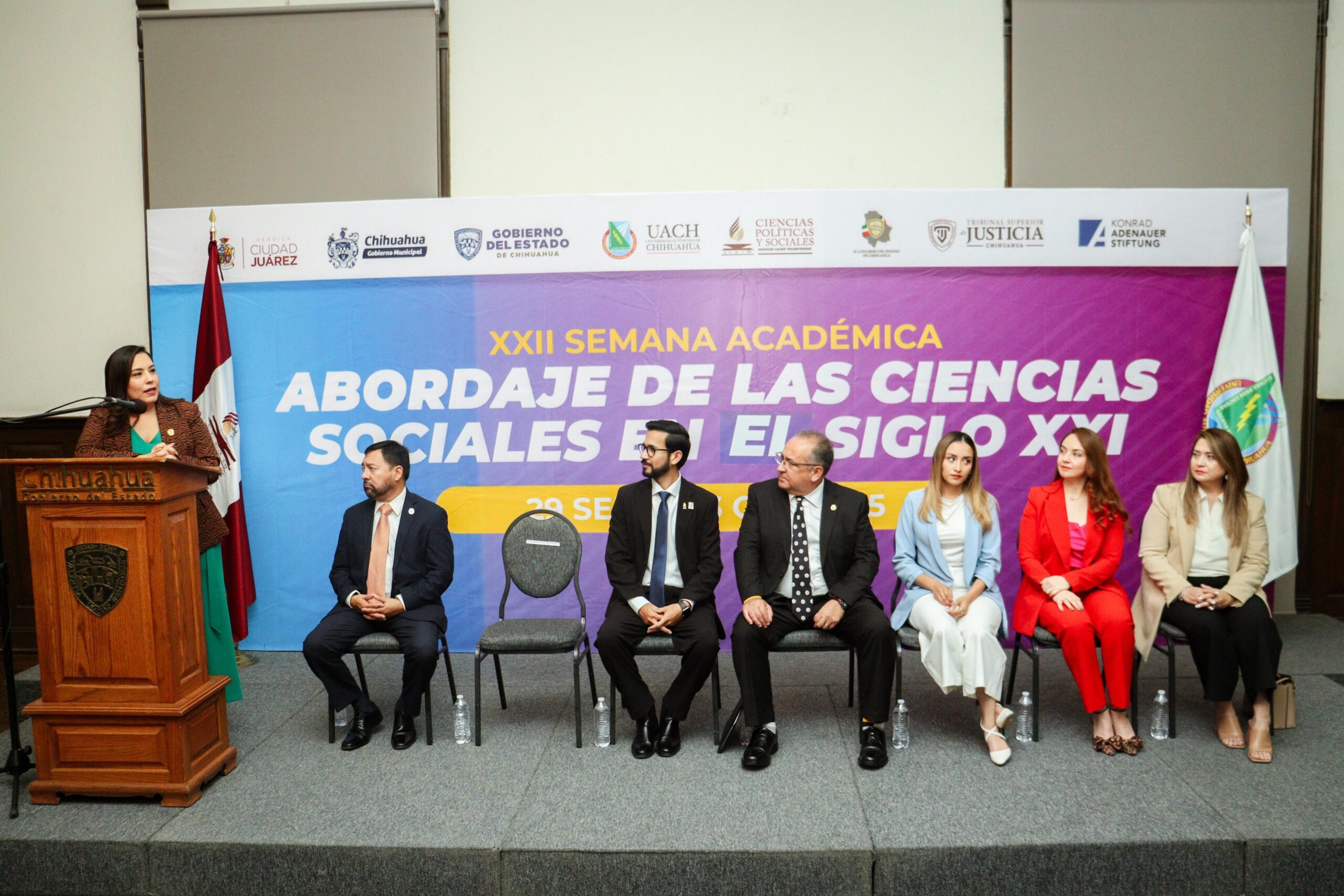 Chihuahua, Chih.- En representación del Congreso del Estado, la diputada por el Partido Acción Nacional (PAN), Joss Vega Vargas, participó en la inauguración de la XXII Semana Académica de la Facultad de Ciencias Políticas y Sociales (FCPYS) de la UACH en donde aprovechó la ocasión para compartir parte de su experiencia de vida y motivar a las y los estudiantes presentes.