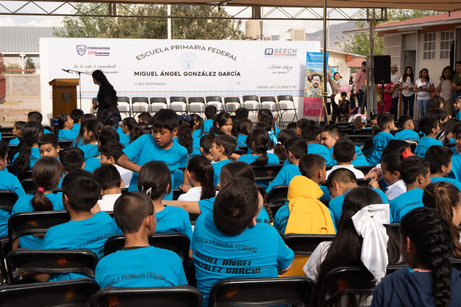 A su vez, la directora del plantel, Flor de Liz Gutiérrez Rascón, expresó que este día marca el inicio de una nueva etapa educativa para 500 niñas y niños de esta comunidad, “llevaremos con orgullo el nombre del profesor González, cuyo legado como educador nos inspira a ofrecer una enseñanza de calidad”.