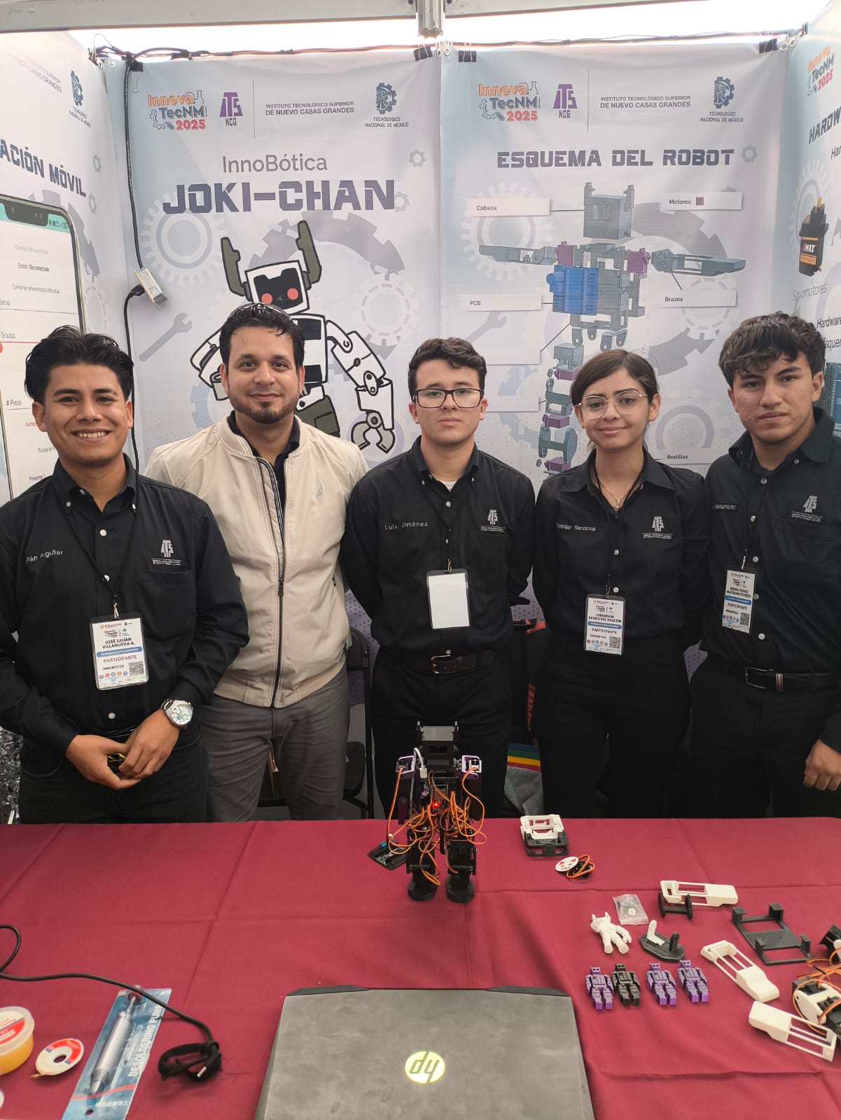 De manera paralela, el Tecnológico de Nuevo Casas Grandes también concursa en Innobótica 2025 con el proyecto “Joky-Chan”, desarrollado por estudiantes de los programas educativos de Ingeniería en Sistemas Computacionales e Ingeniería Mecatrónica, bajo la asesoría del maestro Alfonso Pando Carrillo.