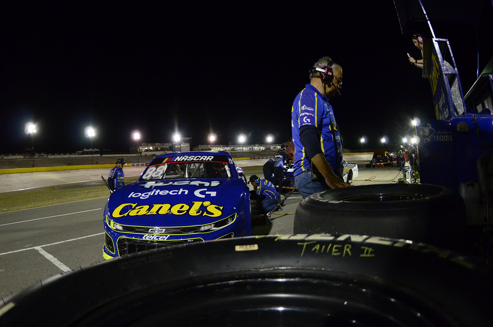 Chihuahua, Chih. 23/09/23 Acompañados por la luz de la luna dio inicio en la ciudad de Chihuahua la última ronda de la temporada regular NASCAR México, El Dorado Speedway escenario que aloja este fin de semana a la máxima categoría del automovilismo mexicano de prácticas donde los pilotos representantes de Canel´s /Logitech G/Laboratorio Tequis/Trejo Promotion Team buscaron ser de los mejores en ambas oportunidades, de la misma manera dejar a los autos #88 y #22 listos para calificación y carrera.