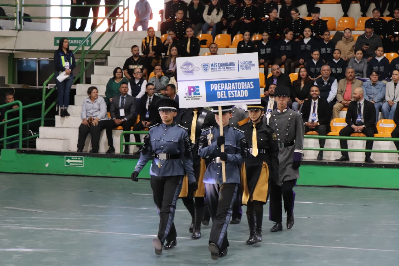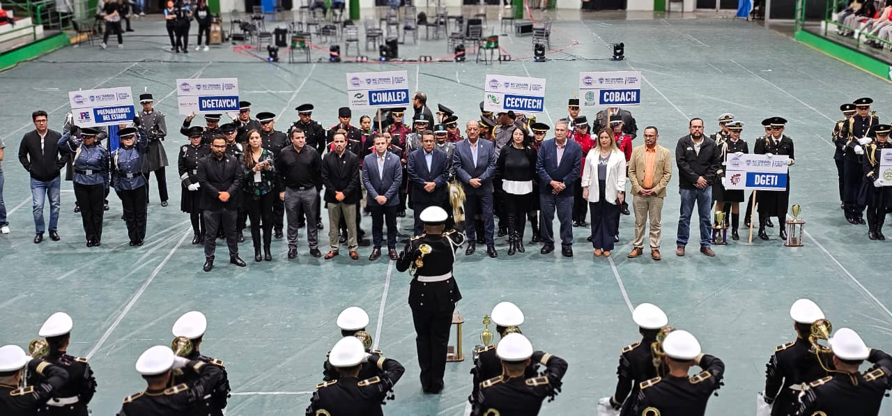 El encuentro cívico se desarrolló en el gimnasio del Colegio de Bachilleres de Chihuahua y tuvo el objetivo de fomentar y fortalecer la cultura cívica y el respeto por los Símbolos Patrios entre el alumnado perteneciente a los diferentes Subsistemas de Educación Media Superior que operan en el estado.