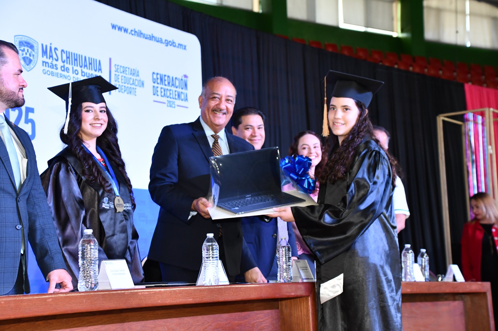 El evento se efectuó en el Gimnasio del Colegio de Bachilleres de Chihuahua y fue encabezado por el secretario de Educación y Deporte, Francisco Hugo Gutiérrez, quien reconoció la constancia, disciplina y compromiso de los alumnos que alcanzaron la excelencia académica.