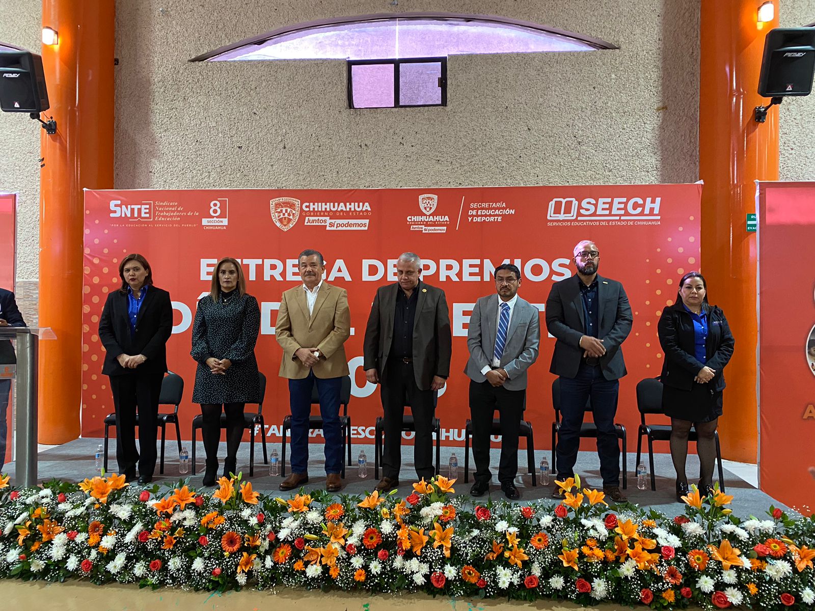 También agradeció a la Gobernadora por el apoyo brindado a través de estos premios, así como por el incremento en un treinta por ciento al recurso que se destina para este fin en beneficio del magisterio chihuahuense.