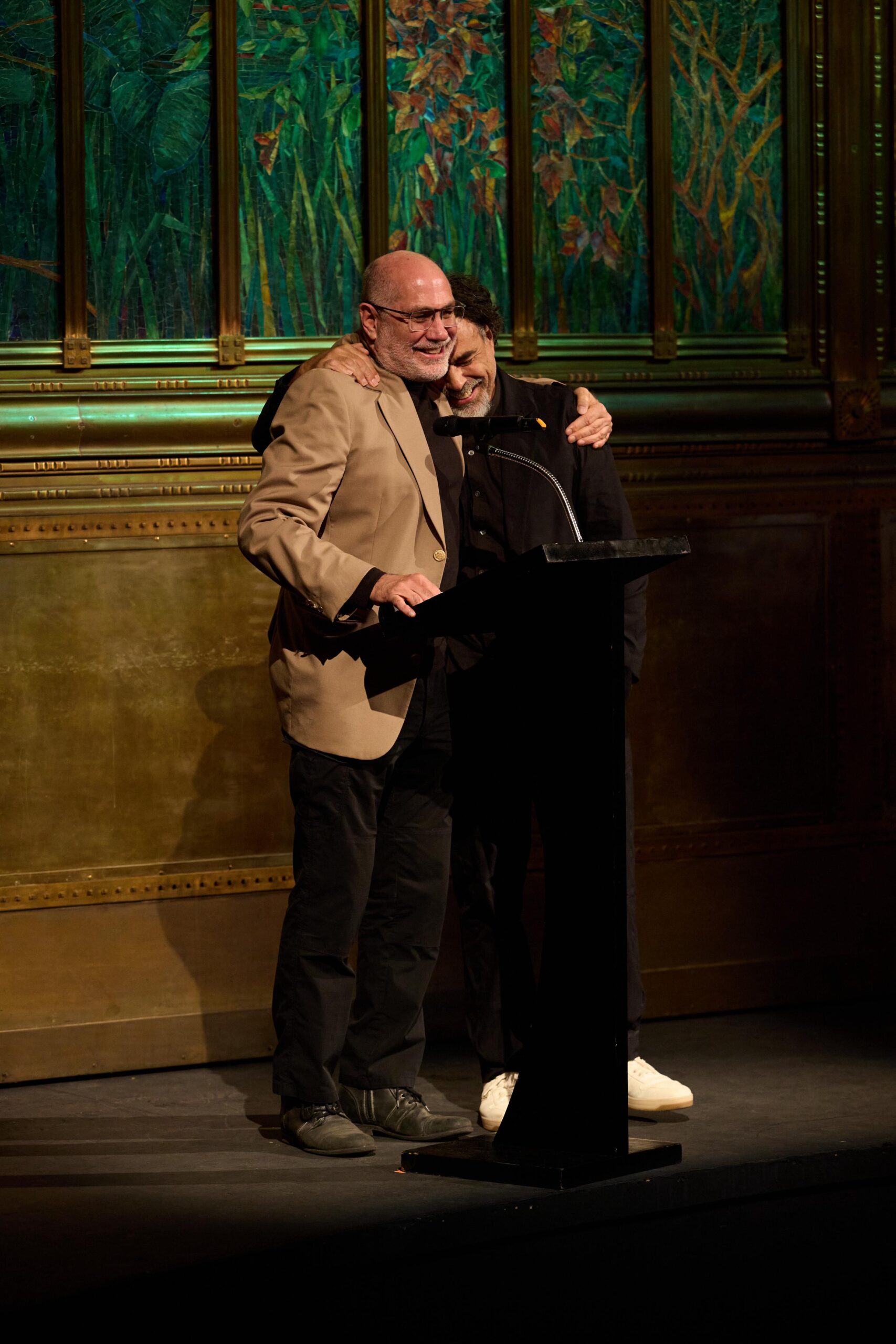 La noche inició con la presentación de Alejandro González Iñárritu, quien subió al escenario entre aplausos y, con visible emoción, invitó a Guillermo Arriaga a unirse a él. En un gesto simbólico y profundamente significativo, ambos compartieron el escenario ante una sala llena que los recibió con una ovación por su reencuentro.