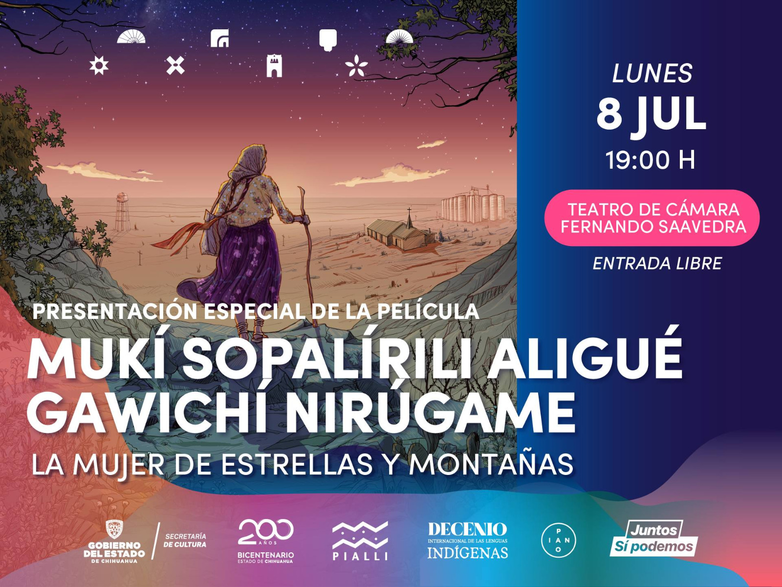 La Secretaría de Cultura de Chihuahua, a través del departamento de Culturas Étnicas y Diversidad, invita a la proyección especial del documental: “Mukí Sopalírili Aligué Gawichí Nirúgame” – La Mujer de Estrellas y Montañas.