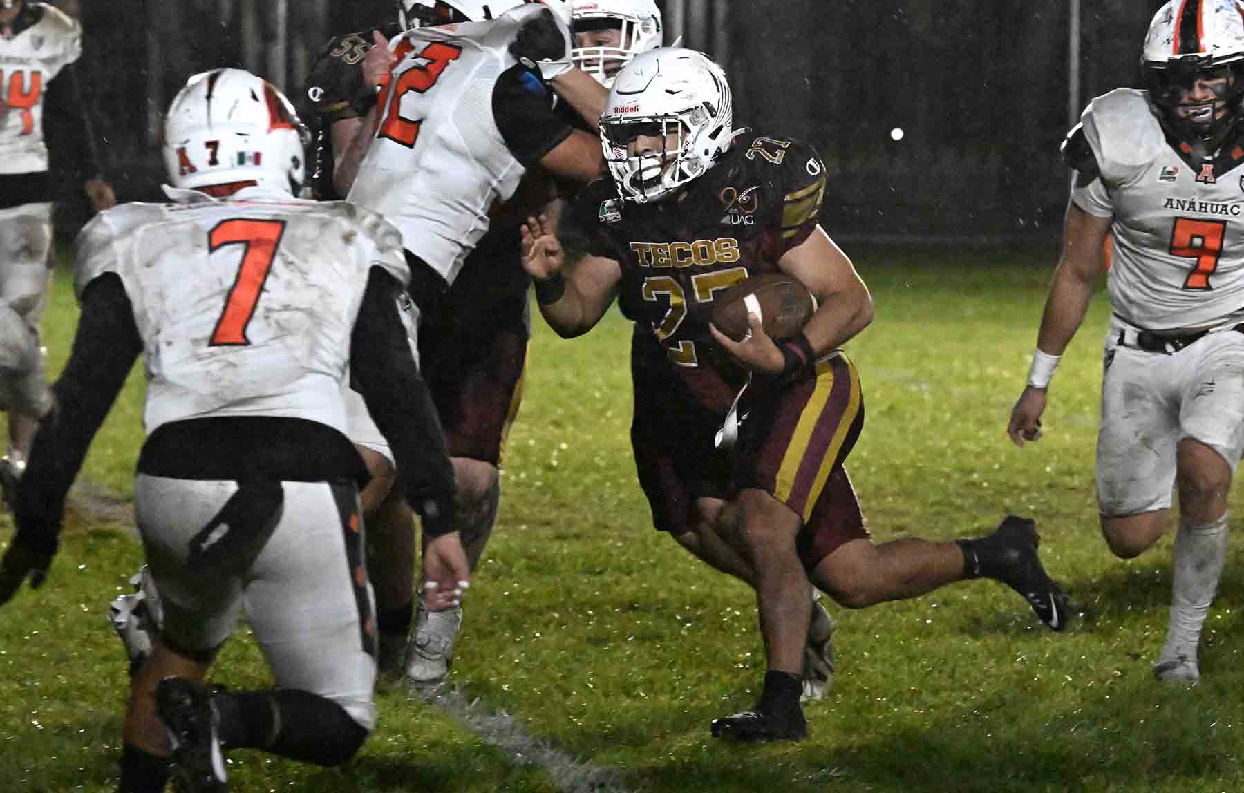 El partido, correspondiente a la cuarta jornada de la Conferencia Nacional de Liga Mayor de futbol americano de la ONEFA, disputado el viernes pasado en el campo “23 de Octubre” de la UAG, resultó sumamente parejo, fue uno de los más reñidos en lo que va de la temporada de Liga Mayor.