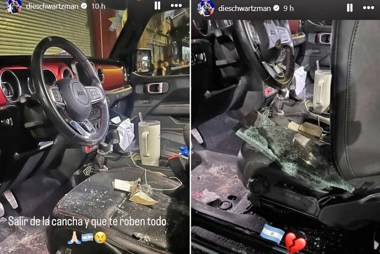 Según el informe, cuando Schwartzman llegó no se identificó y se retiró con el rodado. Luego, se supo que él había sido la víctima cuando viralizo lo sucedido. En las fotografías que tomó el tenista quedó plasmado cómo quedaron esparcidos sobre las butacas los restos de cristales rotos. El deportista eligió acompañar el posteo con una bandera argentina y un corazón roto.